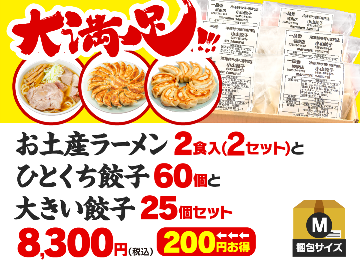 【M】お土産ラーメン2食入(2セット)+ひとくち餃子60個+大きい餃子25個のセット