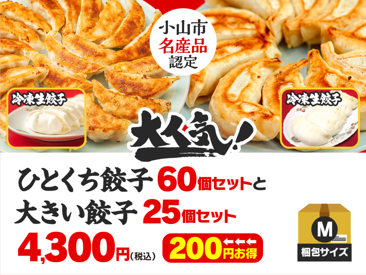 【小山市名産品認定】小山餃子のひとくち餃子(60個)と大きい餃子(25個)おすすめセット!どちらも食べてみたい!という方におすすめです。